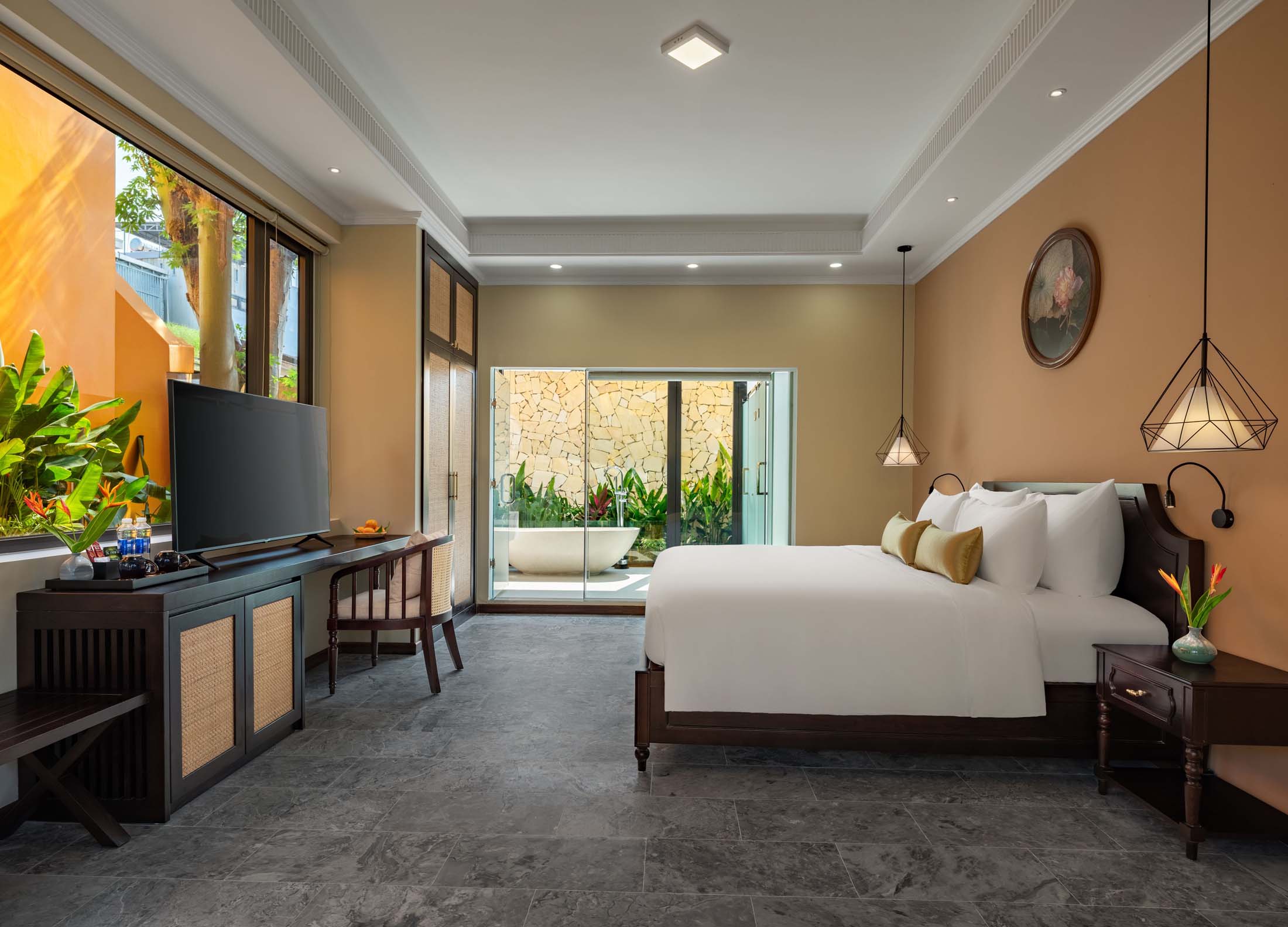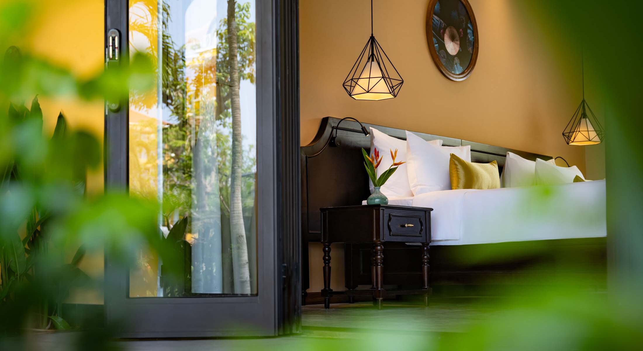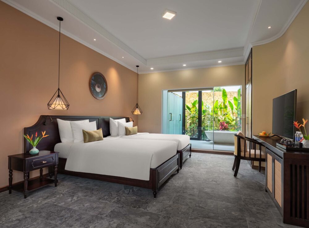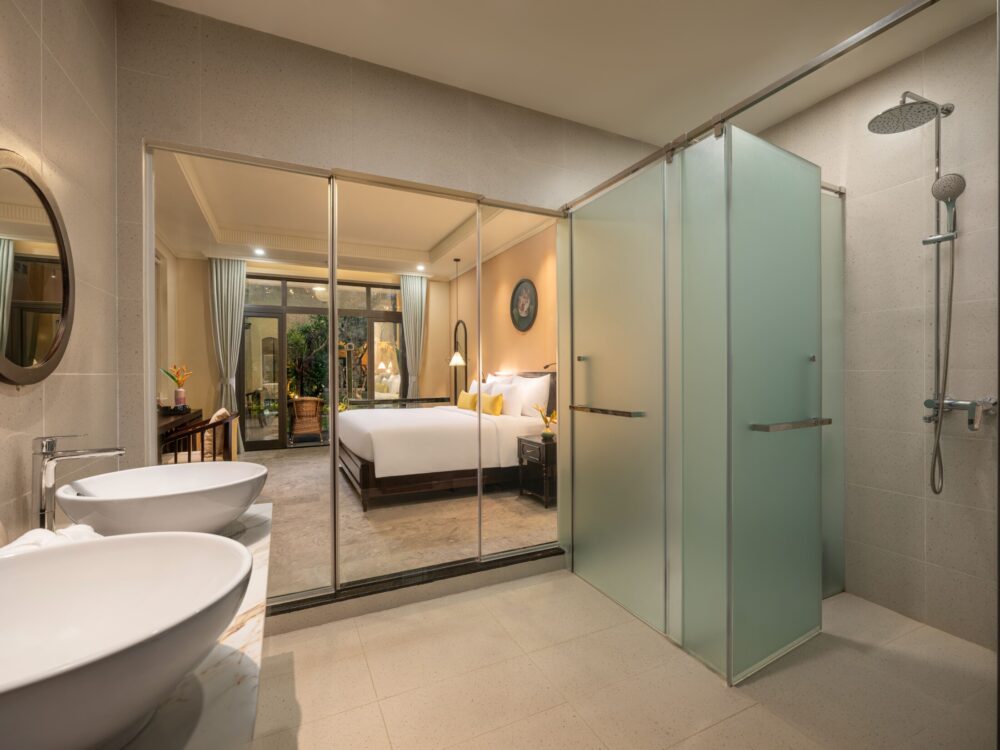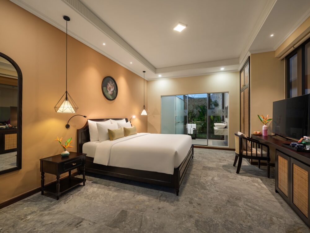 Đắm mình trong sự thư giãn và thanh bình với tầm nhìn ra khu vườn xanh mát. Các phòng Sen Bliss Villa được thiết kế từ những đường cong tinh tế, chất liệu tự nhiên và tông màu nhã nhặn, mang đến không gian hài hòa tuyệt đối với thiên nhiên.