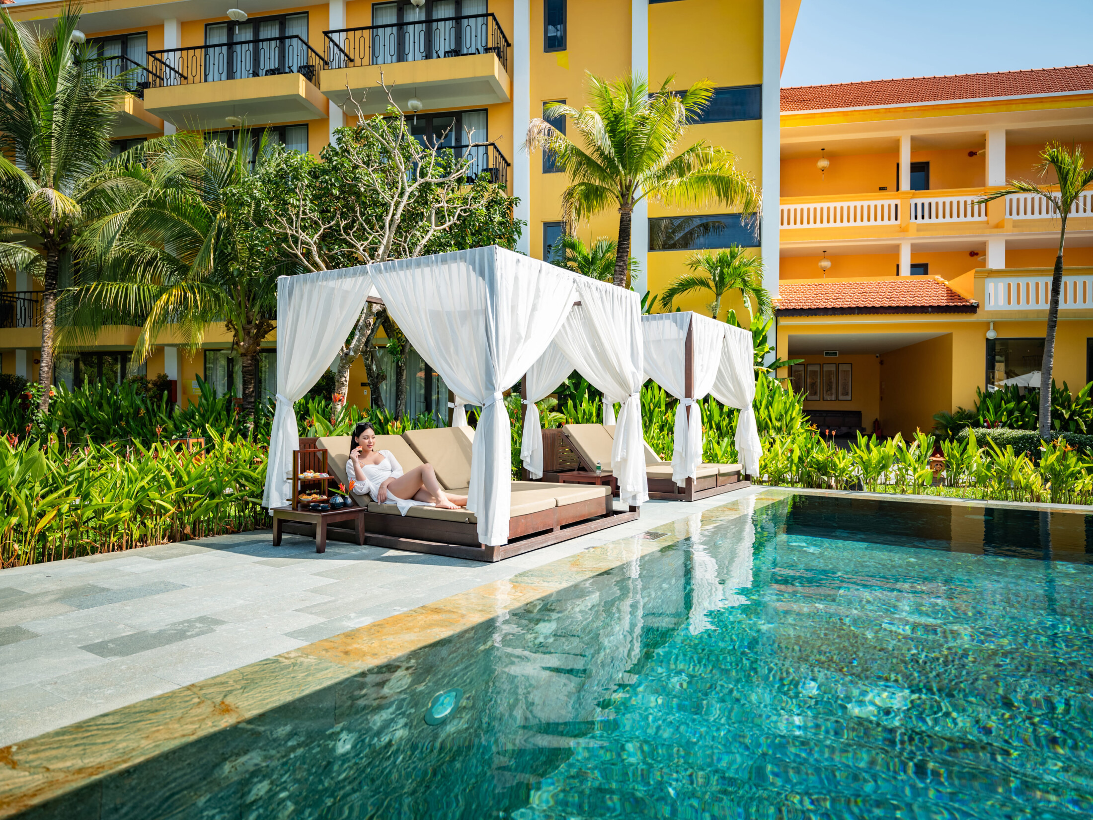 Trải nghiệm Afternoon Tea mang đậm nét địa phương tại Sen Village Hoi An, nơi hương vị Việt Nam truyền thống hòa quyện cùng khung gian hồ bơi xanh mát. Buổi trà chiều của bạn được phục vụ trên tháp gỗ tinh tế, gồm nhiều món ăn nhẹ hấp dẫn. Hãy tận hưởng làn gió nhẹ, hương sen thoang thoảng và khoảnh khắc thư thái chậm rãi, nơi ẩm thực, văn hóa và sự tĩnh lặng hòa làm một. Đây là cách tuyệt vời để thư giãn và cảm nhận Hội An theo cách chân thật và trọn vẹn nhất.